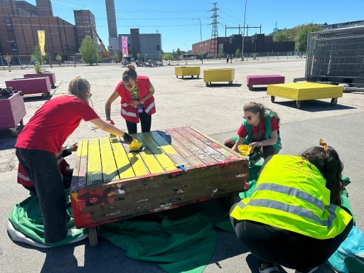 World Village Festival is committed to continually improving its environmental efforts. The festival strives to minimize waste and is committed to recycling. The international volunteers of the festival are part of larger volunteer crew which is carrying out several different tasks. The first three days the festival area is built up. This means carrying tables, setting up tents, installing signs and banners and helping with area decoration. During the festival days many volunteers are needed in assisting tasks in different teams which keep the festival area tidy and festiival visitors will learn about recycling. After the festival, volunteers work with take-down work such as taking down banners, signs and decorations.